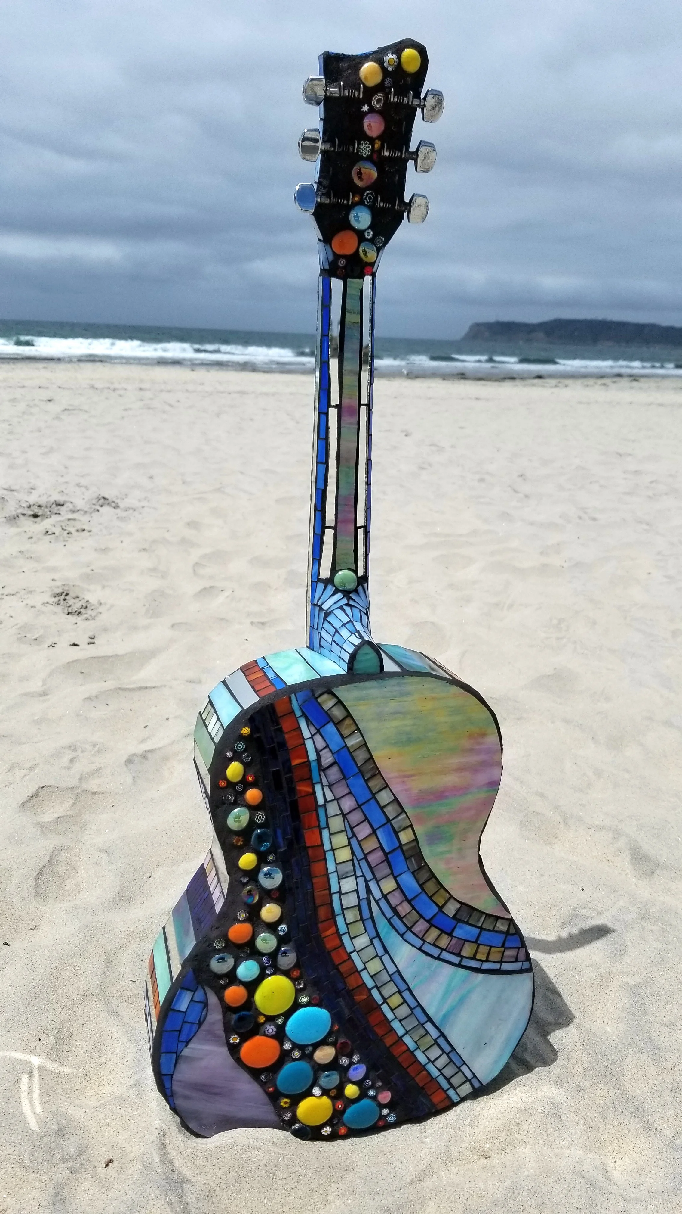 Coronado, CA. Stained glass, glass gems, millefiori, and mirror. Click to enlarge.