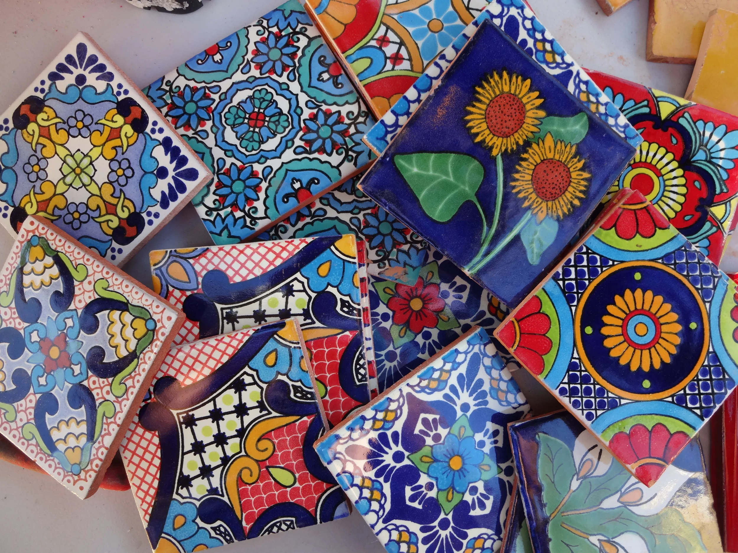 Smalti refers to an opaque glass tile produced by pouring the molten glass into flat round slabs (called “pizzas” in Italy, and “tortillas” in Mexico), which are then chiseled into small bricks that can be cut and shaped further. Smalti originated in the Byzantine empire (4th-15th century) and can be seen in the stunning mosaics created during that time. The colors are deep and saturated and can be quite reflective. The inherent irregularity of smalti can create a highly textured mosaic. Smalti comes in a wide variety of hues, as well as iridescent and metallic. The Octopus and Anesthesia surfboards, and Frida Kahlo portrait featured in the Gallery section of this website utilize both opaque and iridescent smalti.