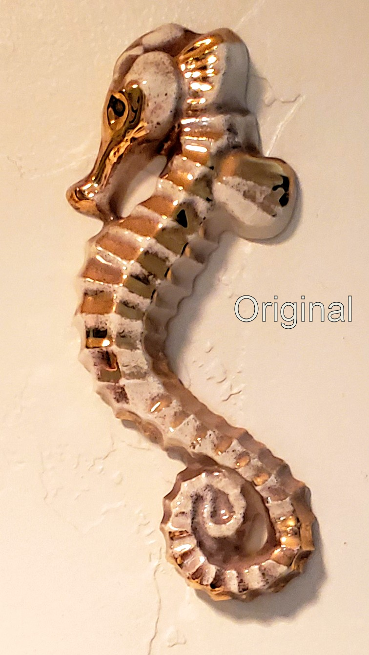 Coronado, CA. Fused glass mosaic with 24k gold fused into the glass (eye made of dichroic glass with 24k gold). Based on client’s small vintage ceramic piece. Click to enlarge.